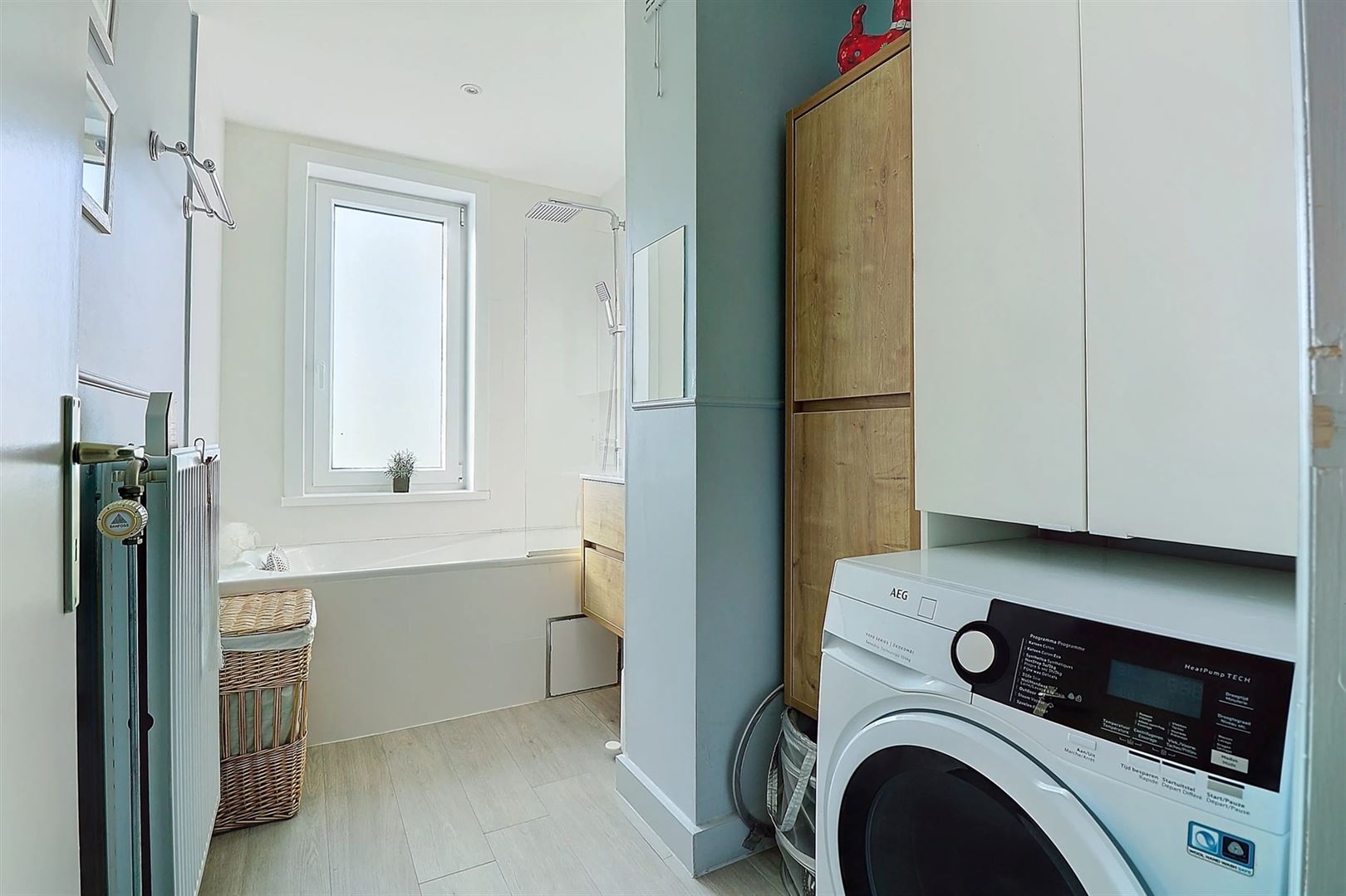 Via le hall de nuit vous accédez au deux chambres et salle de bains avec baignoire, meuble lavabo et emplacement pour machine à laver.