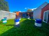 Passage latéral à la maison et un grand jardin clôturé avec un accès via l'arrière du terrain.